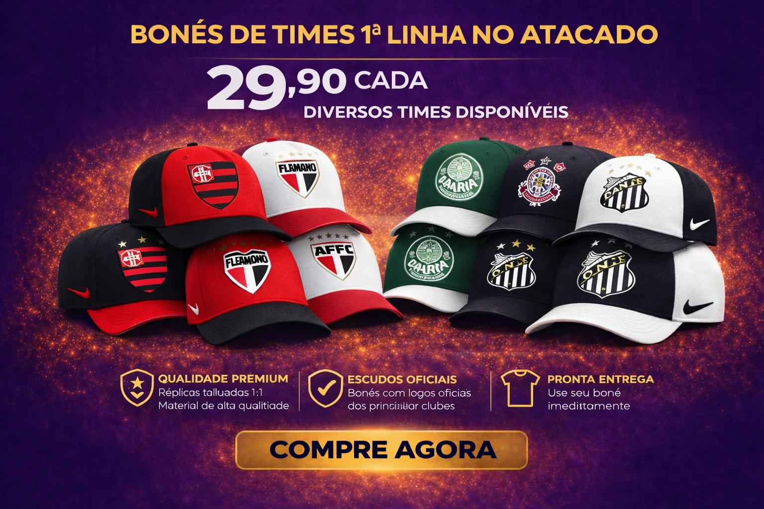 Os bonés de time são itens muito procurados por torcedores e fãs de futebol. O Kit C/10 Bonés De Time No Atacado permite oferecer um produto com excelente aceitação, aumentando o ticket médio e a lucratividade.